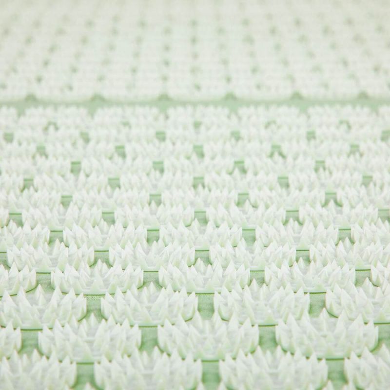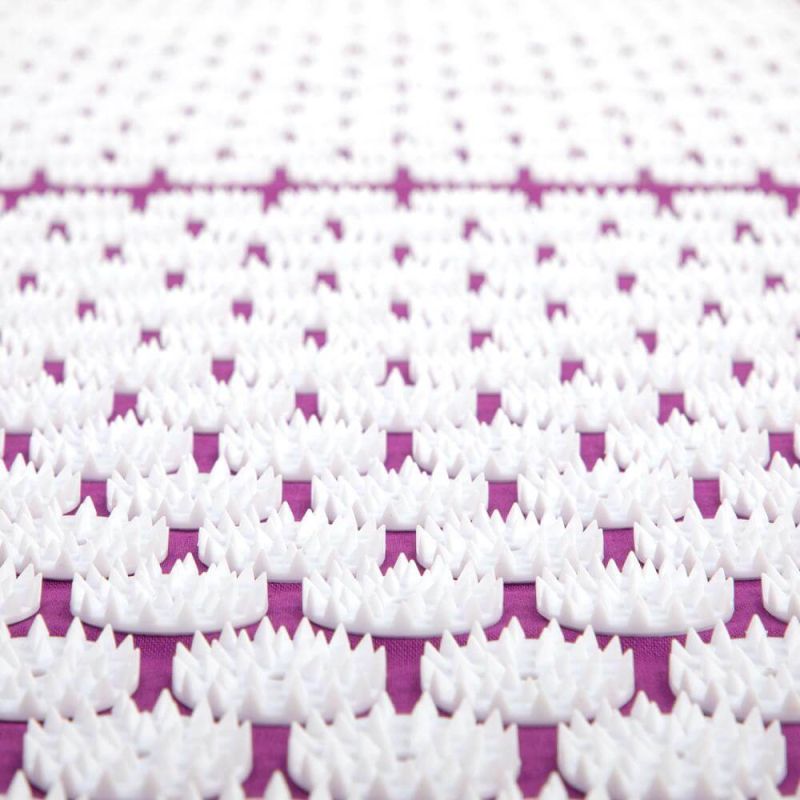 Свалящия се калъф на килимчето е изработен от памук. Килимчето е с пълнеж от дунапрен. Игличките за акупресура са изработени от ABS пластмаса.