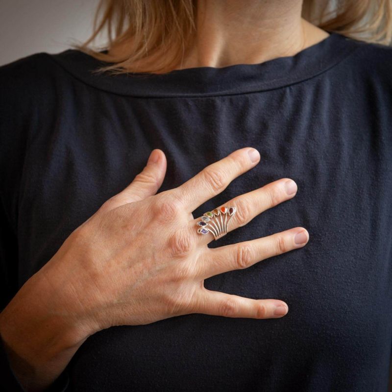 С нашият пръстен за чакри носите наистина специално и привличащо вниманието бижу на ръката си. Пръстенът е деликатно изработен, но същевременно е смел.